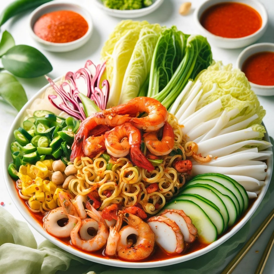 안녕하세요! 오늘은 봄의 싱그러움과 바다의 신선함을 함께 느낄 수 있는 봄동과 해물 비빔국수를 만들어 볼게요.